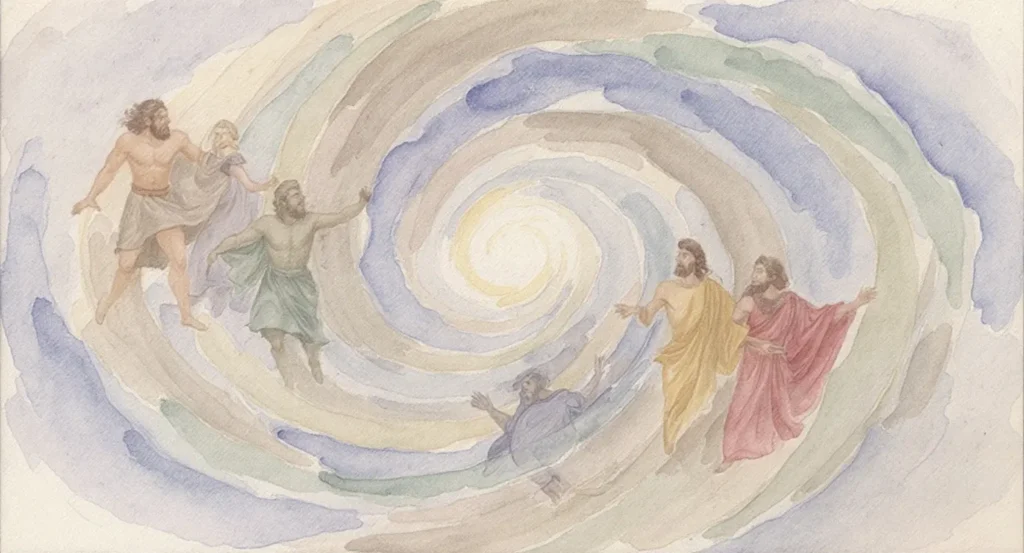 • Prvobitni ples: Čin stvaranja, ne snagom rata ili reči, već pokretom i telom božanstva; ova tradicija se razlikuje od Hesiodove ili orfičke, naglašavajući estetsko i ritmičko poreklo kosmosa3.